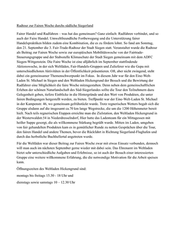 Aktuell sind wir 14 Frauen aus dem Hickengrund, die sich ehrenamtlich für einen gerechten Handel in unterprivilegierten Ländern einsetzen. Neben dem Ladendienst fallen dabei Aufgaben wie Einkauf, Warenpräsentation, Logistik und Organisation, Schaufenstergestaltung, Öffentlichkeitsarbeit und vieles mehr an. Wir freuen uns über jede und jeden der mitmachen möchte, schau einfach mal vorbei.